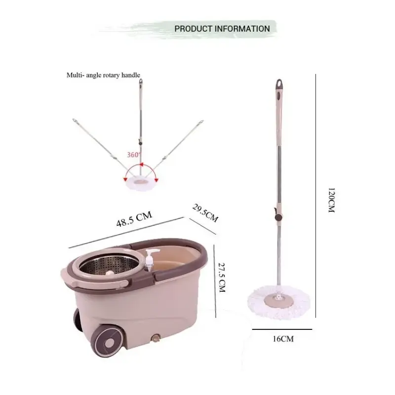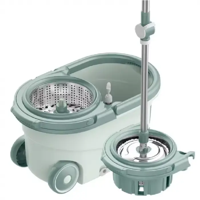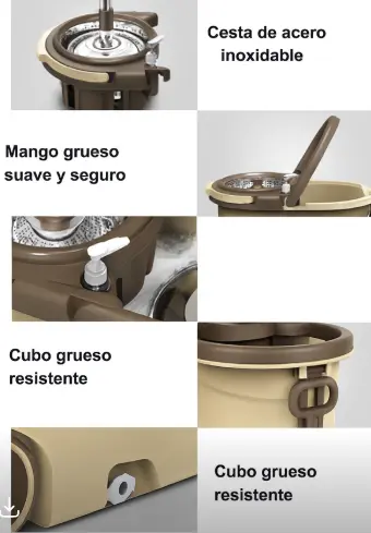 Su cuba giratoria de acero inoxidable per.mite un centrifugado potente y uniforme, dejando la mopa casi seca en segundos. Las ruedas incorporadas + la manija transportadora te permiten moverlo sin levantar peso, ideal para quienes cuidan su espalda o quieren limpiar sin cansarse.